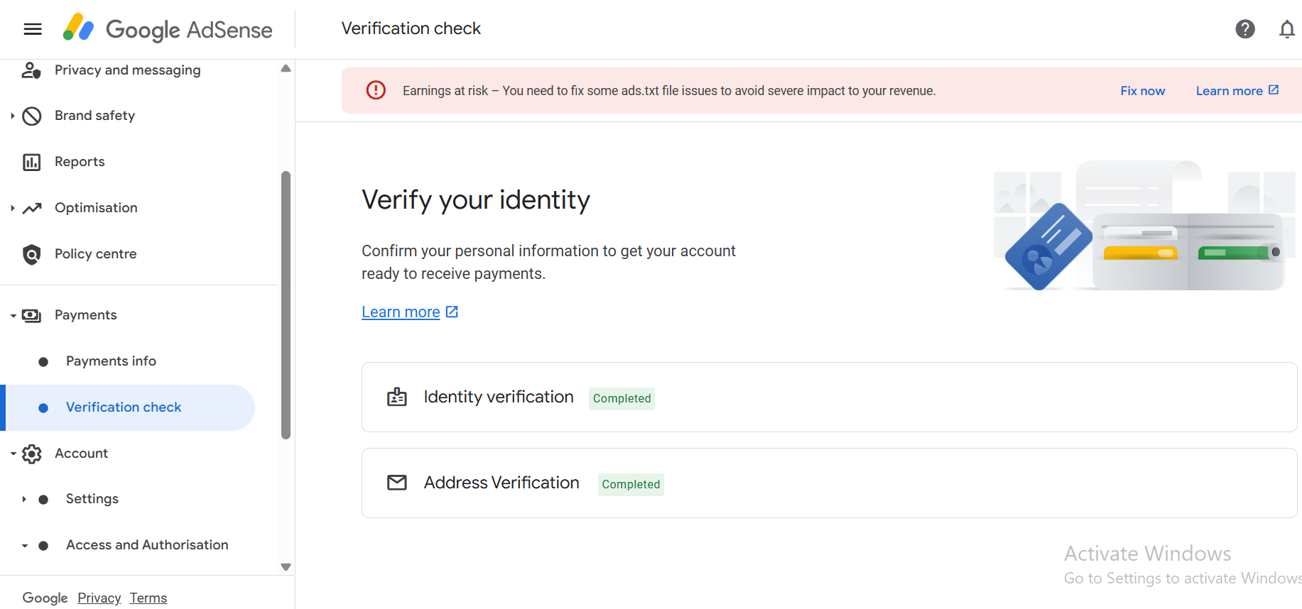 You will get your AdSense pin verification in less than 7 days. When your earnings reach the verification threshold of 10$. Google sends a unique 6-digit Personal Identity Number (PIN) to your payment address through international standard mail.