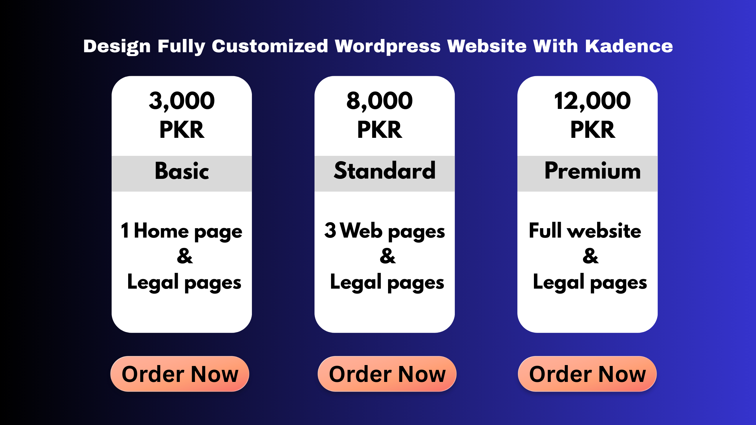 In this standard package, I will design 3 responsive and modern WordPress pages (like Home, About, Services) plus essential Legal Pages using the Kadence theme. Ideal for businesses and bloggers seeking a solid web presence with clean design and fast performance.